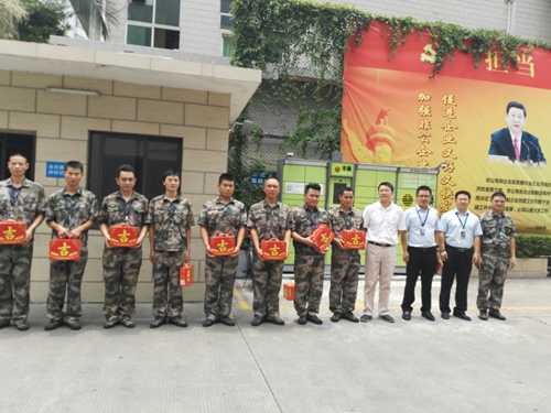 值此8月1日,中國人民解放軍建軍89周年之時,集團總裁趙術開、總裁辦主任范叢明、物業(yè)管理公司副總經理何先兵對公司一線保安們進行了“八一”建軍節(jié)走訪慰問送